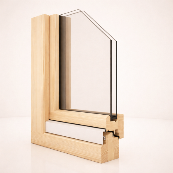 Hergestellt aus hochwertigem Schichtholz, verfügt es über einen Flügelquerschnitt von 92x76mm und einen Rahmenquerschnitt von 92x82mm, was darauf schließen lässt, dass die Abmessungen so gewählt wurden, dass sie leicht wirken, ohne die Festigkeit und Haltbarkeit im Laufe der Zeit zu beeinträchtigen, und somit die Verwendung von leistungsstärkerem Doppelglas ermöglichen.