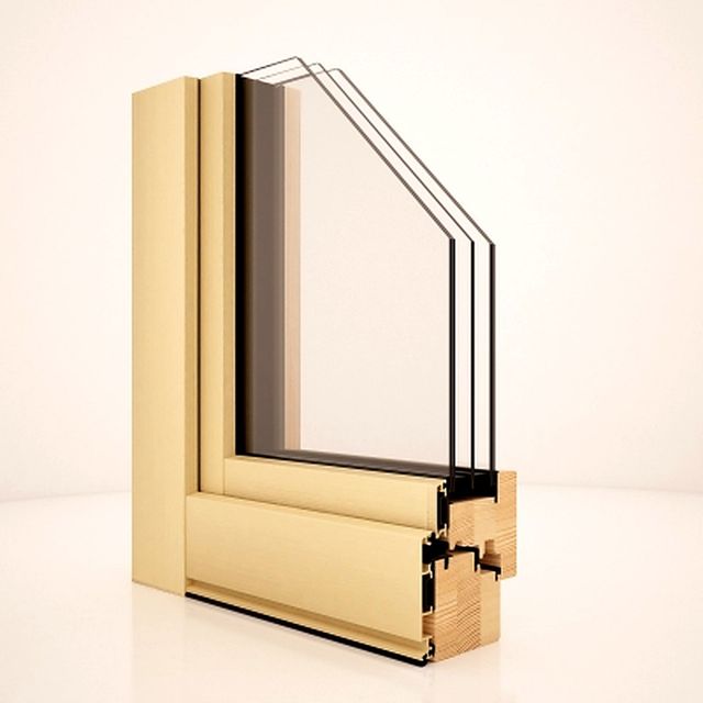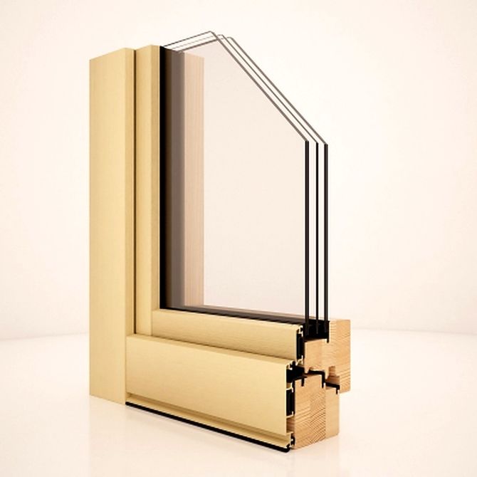 Hergestellt aus hochwertigem Schichtholz, außen mit Aluminiumprofilen verkleidet, hat es einen Türquerschnitt von 81x81mm und einen Rahmenquerschnitt von 76x91mm.